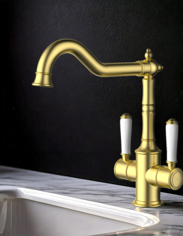 It exudes luxury and warmth, bringing an elegant glow to any bathroom or kitchen. Its soft, matte finish offers a refined, less reflective alternative to traditional gold, delivering sophistication with subtlety. Ideal for contemporary and opulent designs, this finish creates a striking yet understated aesthetic, perfect for those seeking to make a bold yet graceful statement.